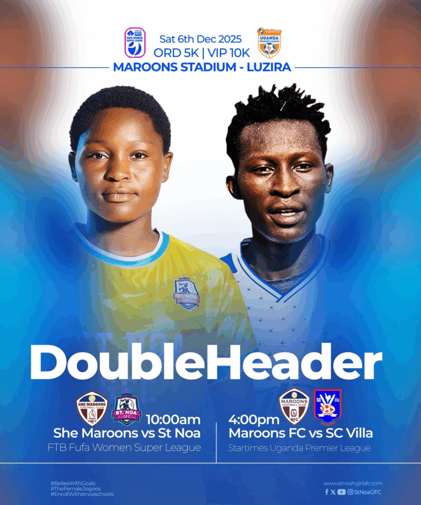 The double header fixtures will take place at the Maroons FC Stadium in Luzira with She Maroons FC playing St Noa Girls FC in the first double header match at 10am and then later our partner mens club SC Villa will take on Maroons FC in the afternoon fixture at 4pm.